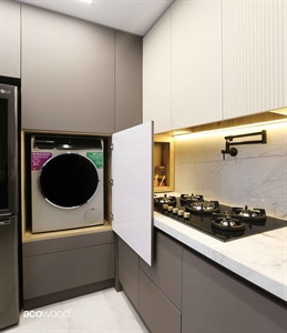 همچنین ماشین لباسشویی و ظرف شویی با درب های کابینتی کاور شده و حالت توکار داره 👍