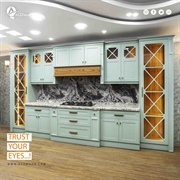 پروژه کابینت نئوکلاسیک پلی اورتان آبی صفحه گرانیت