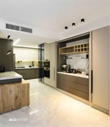 همچنین ماشین لباسشویی و ظرف شویی با درب های کابینتی کاور شده و حالت توکار داره 👍